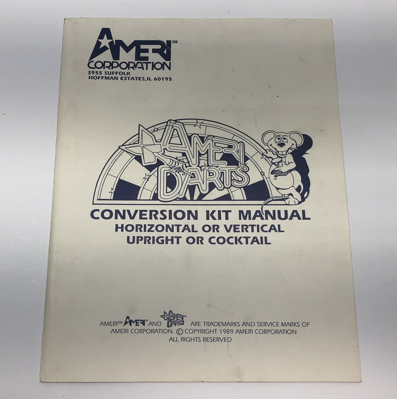 Original Ameri Corporation Ameri Darts arcade game conversion kit manual.