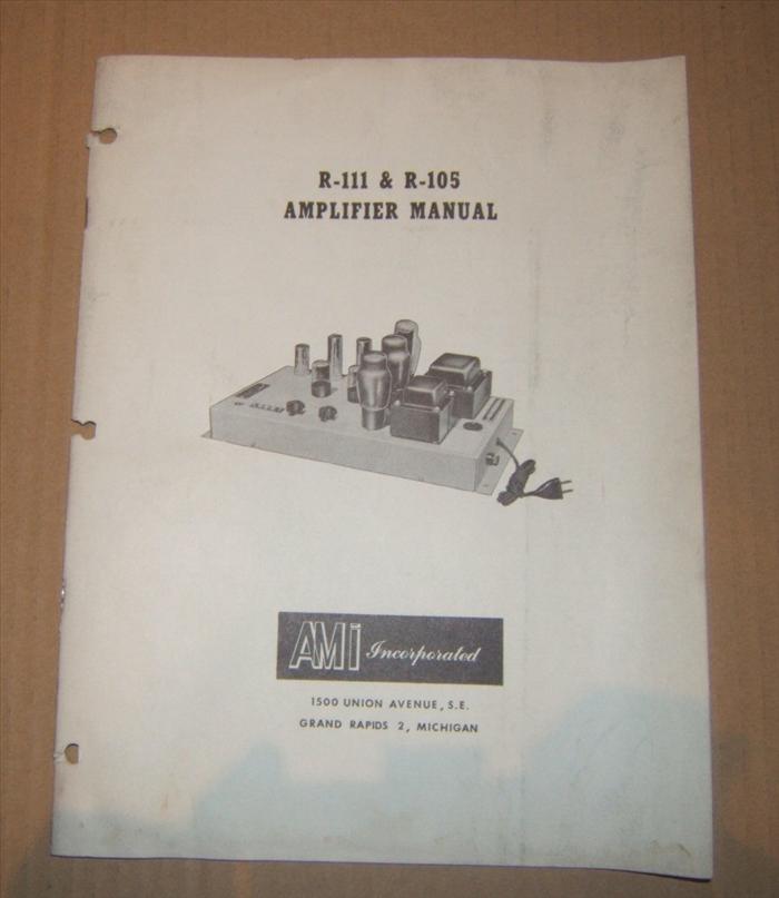 Original AMI R-111 and R-105 Amplifier Service Manual in good condition.