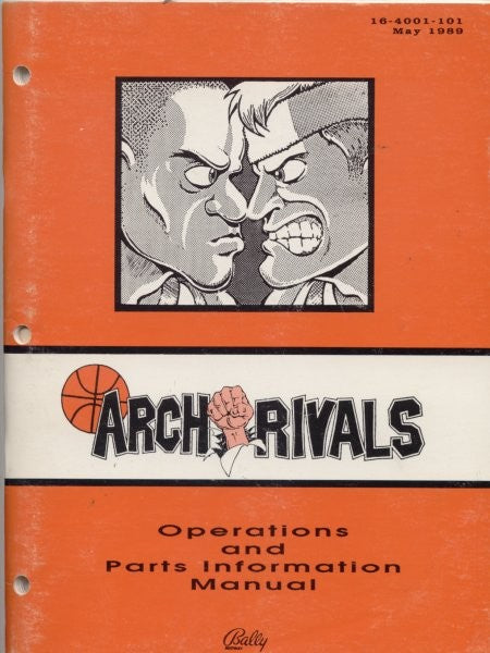Bally Arch Rivals Operations and Parts Information Manual. Includes game and test information, parts lists, wiring diagrams and schematics.