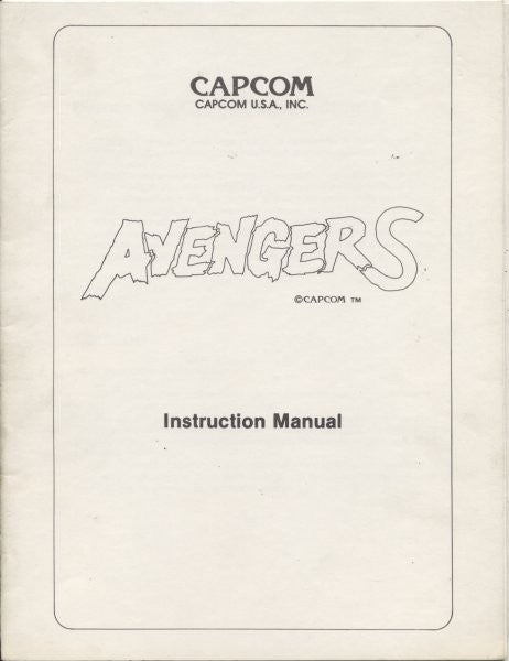 Capcom Avengers arcade game Instruction Manual. Includes game operating information, wiring, dipswitch settings and related information.