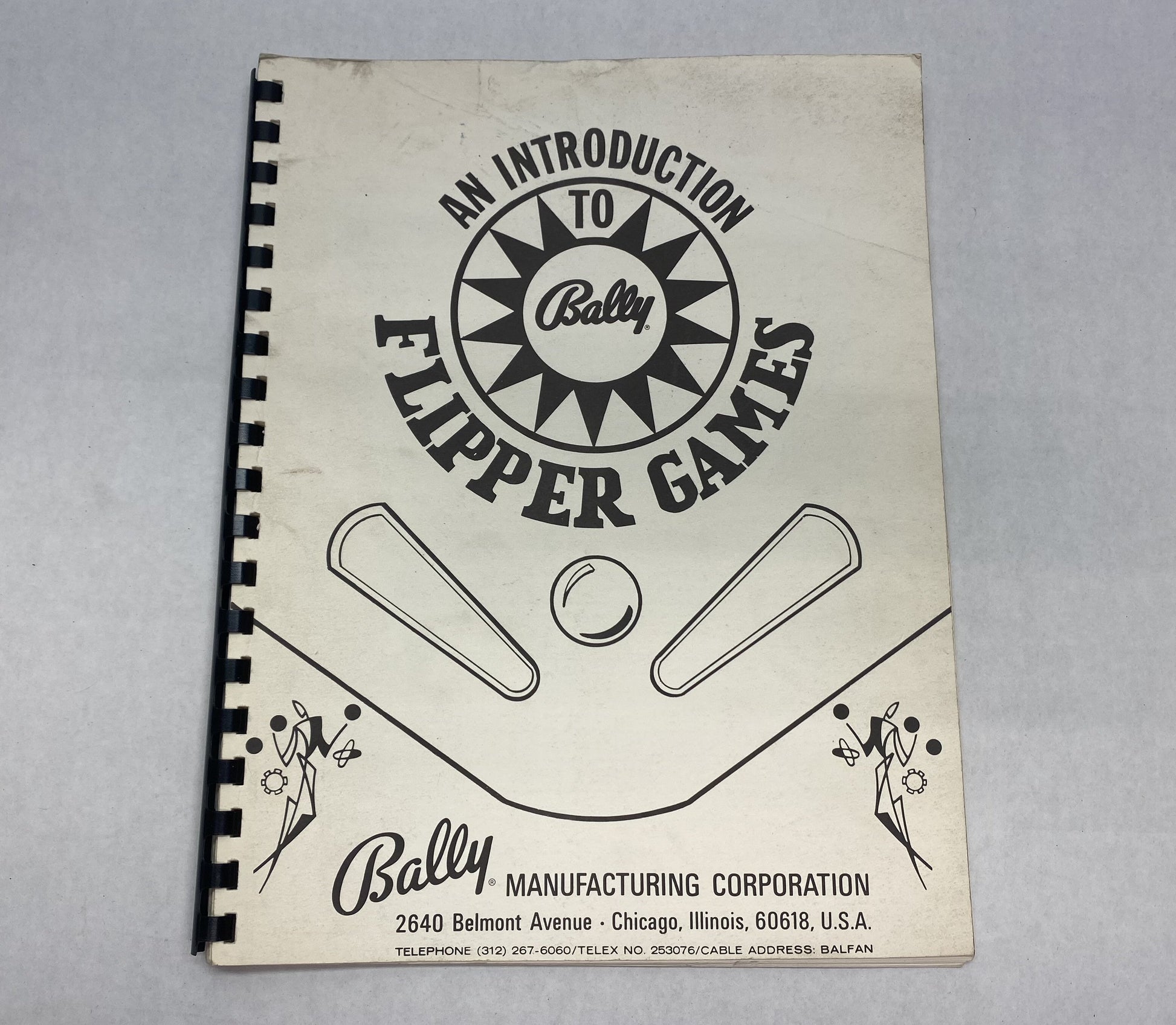 Bally An Introduction to Flipper Games Pinball Manual. Includes information on game adjustment, maintenance and related procedures for Bally Pinball games from the 1970s from what we can see.