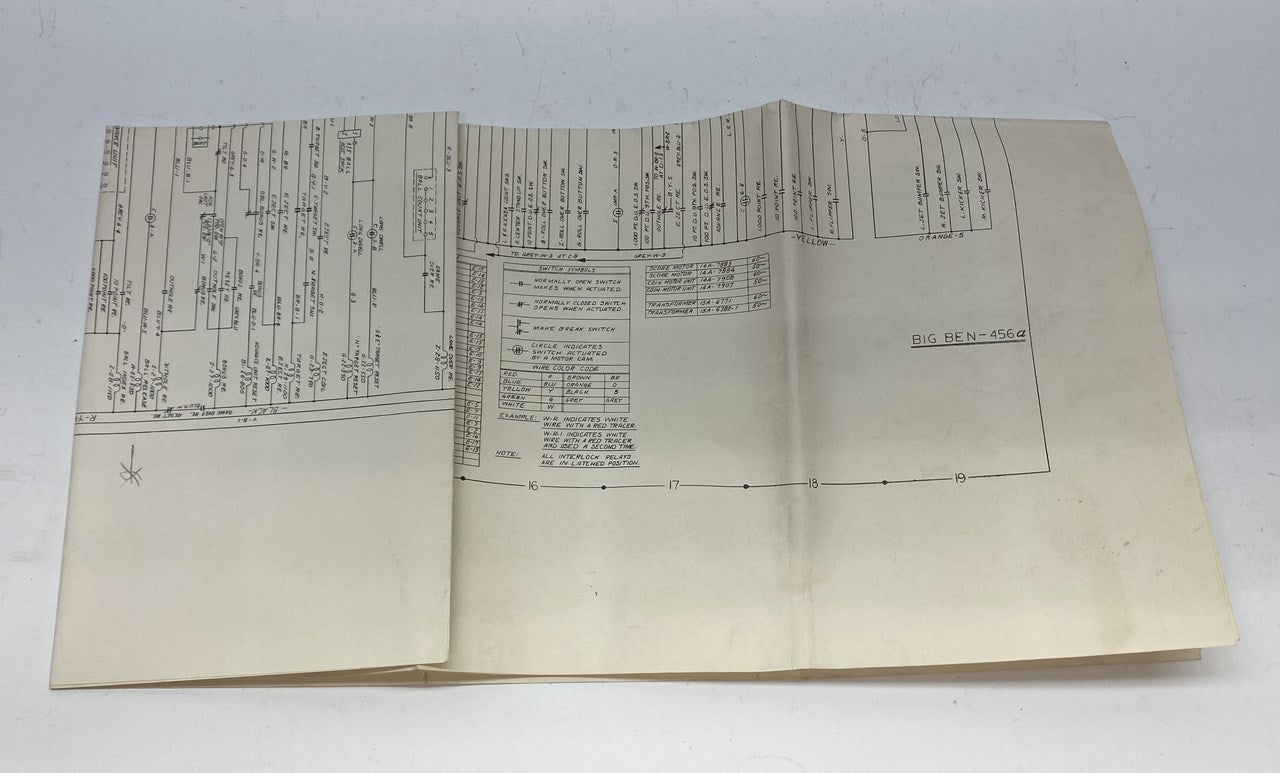Original Williams Big Ben pinball machine schematic/wiring diagram from 1975.