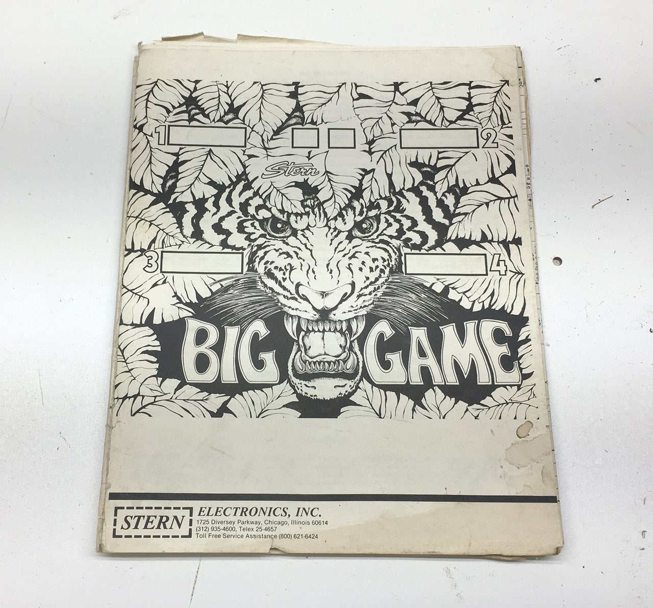 Complete, original Stern Big Game Pinball Machine in used condition.