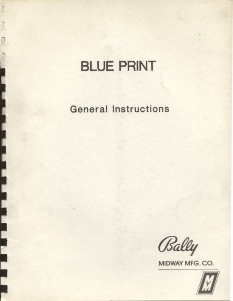 Bally Midway Blue Print General Instructions. Includes operation information, technical troubleshooting, parts lists and game schematics.