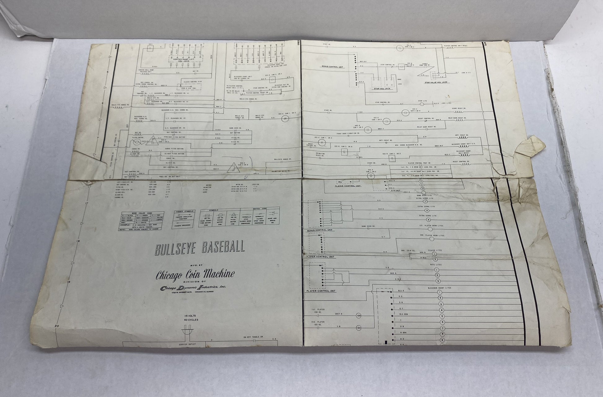 Original Chicago Coin's Bulls Eye Baseball arcade game schematic / wiring diagram sheet in used condition with some wear from 1967.