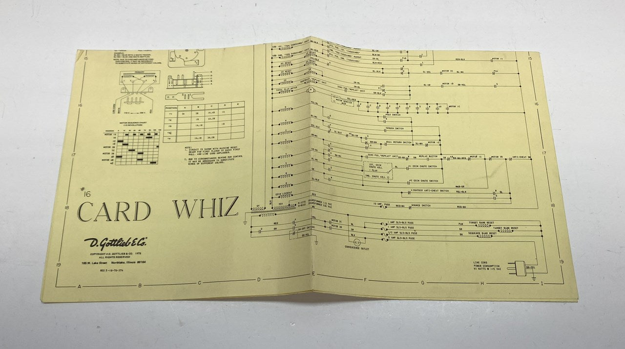 Original Gottlieb Card Whiz pinball machine schematic/wiring diagram from 1976.
