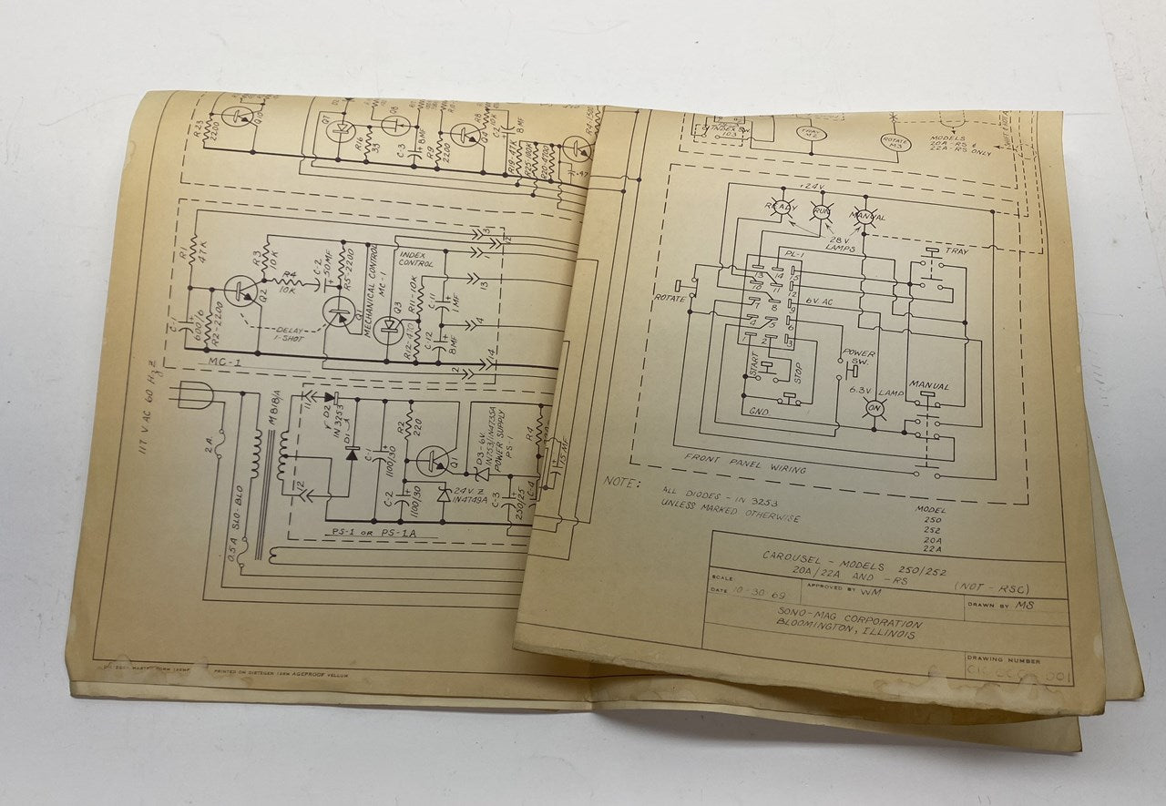 Original Carousel by Sono-Mag Corp schematic / wiring diagram sheet in used condition.