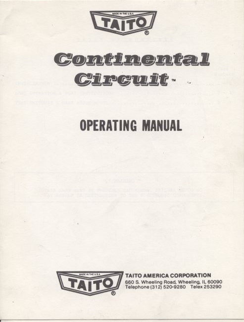 Original Taito Continental Circuit Operating Manual in very good condition.