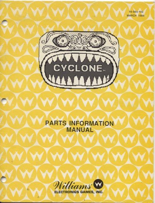 Original Williams Cyclone pinball machine parts information manual from March 1988.