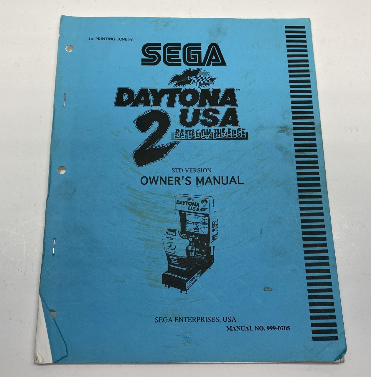Original Sega Daytona USA 2 Battle on the Edge STD version Owner's manual in good condition. Note manual is missing its back cover and has some typical wear.