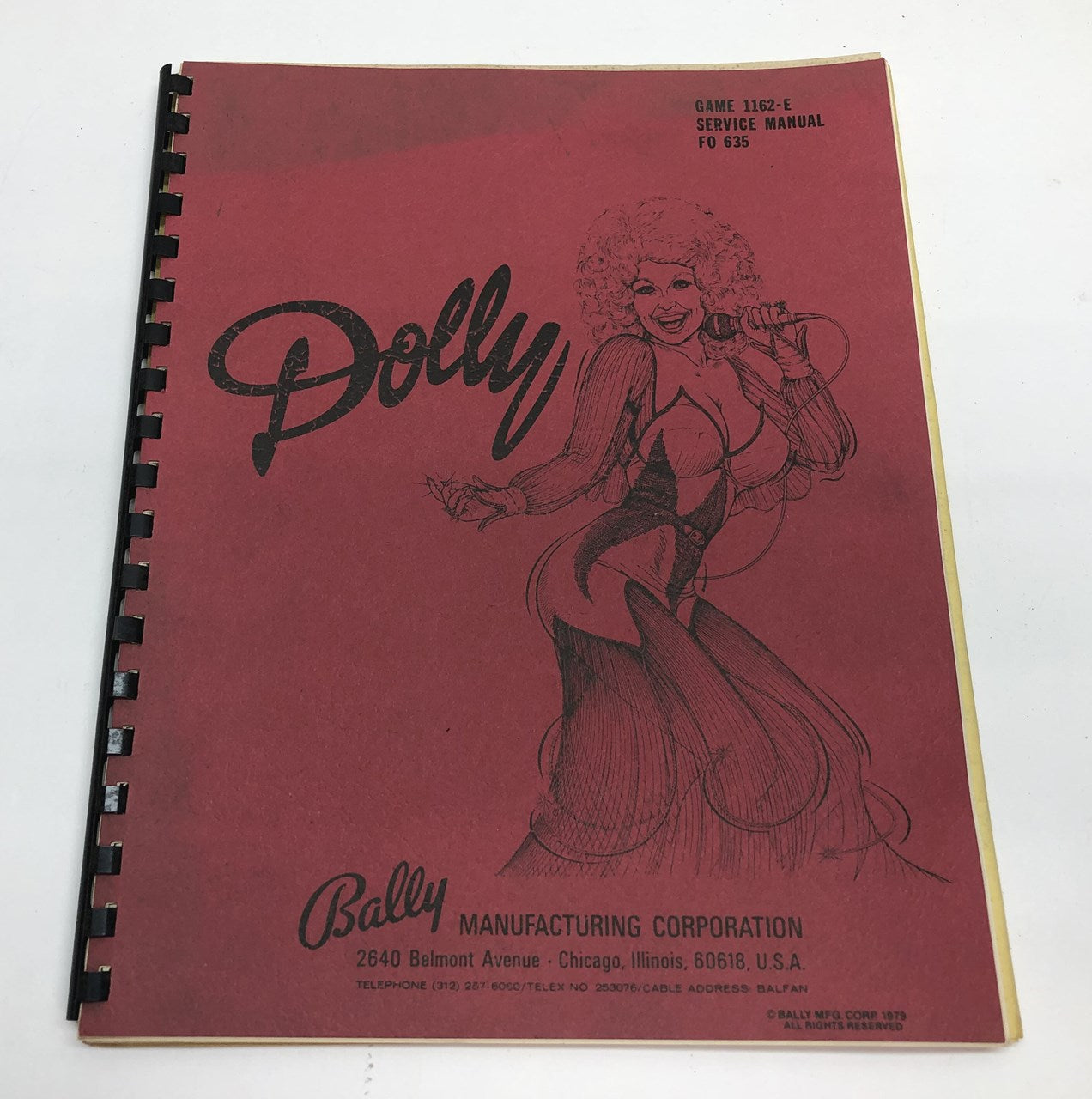 Original Bally Dolly pinball instruction manual from 1979 in good, used condition. Includes game operation information, troubleshooting information, parts lists and game schematics.