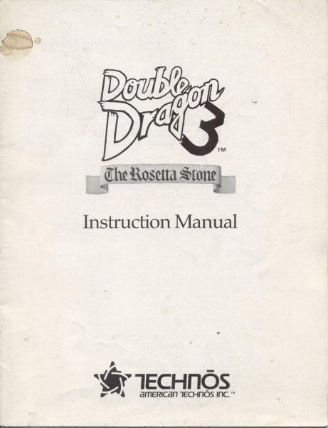 American Technos Double Dragon 3: the Rosetta Stone arcade game instruction manual in good condition.