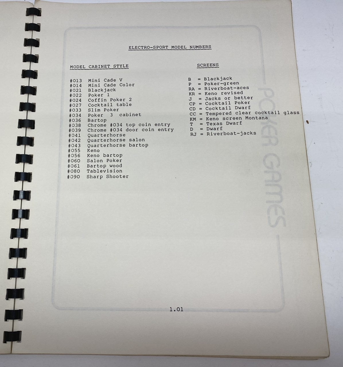 Original Electro-Sport Service Guide from 1983 that appears to be for a number of its games including Blackjack, Poker, Keno, Quarterhorse, Sharp Shooter, etc. Contains quite a bit of technical information (some schematics as well) for these games.