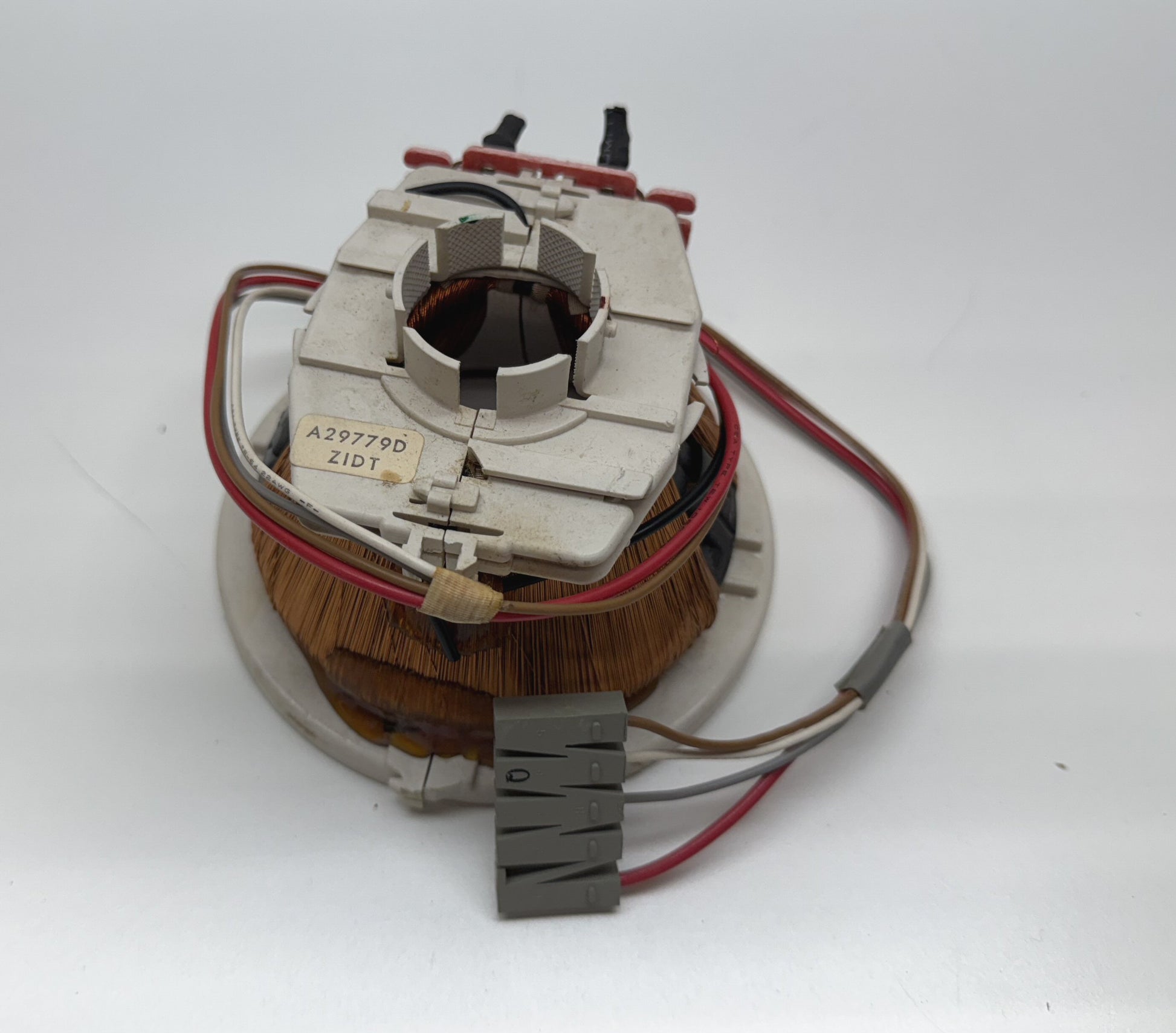What we suspect is a new old stock (NOS) Electrohome G07 monitor yoke. We found this one in a warehouse cleanout, it is fairly clean and we don't believe it was ever used. It has a part number of A29779D, which we believe corresponds to G07 monitors.