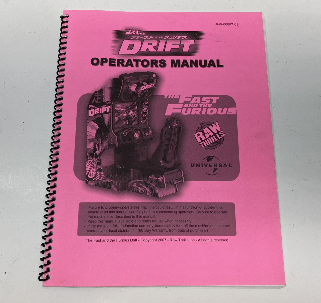 Original Raw Thrills The Fast and the Furious arcade game Operators' manual in very good condition. Includes game operating information, parts info, cabinet wiring and troubleshooting info. Does not include schematics.