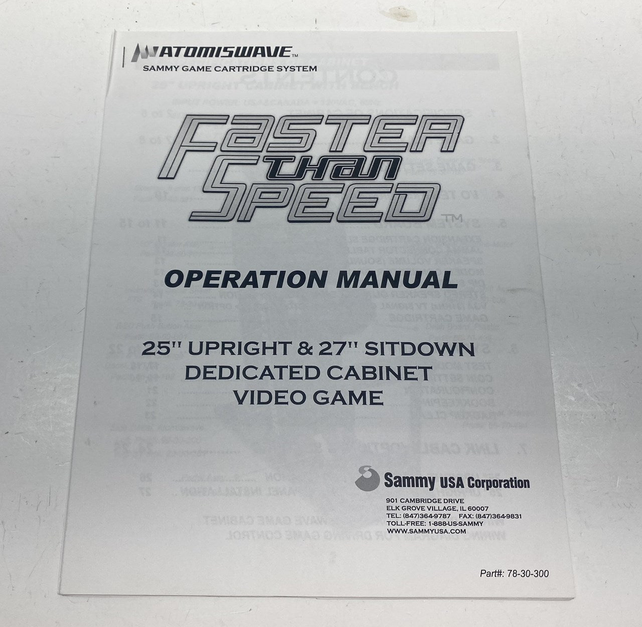 Original Sammy USA Faster than Speed Operation Manual in good condition.