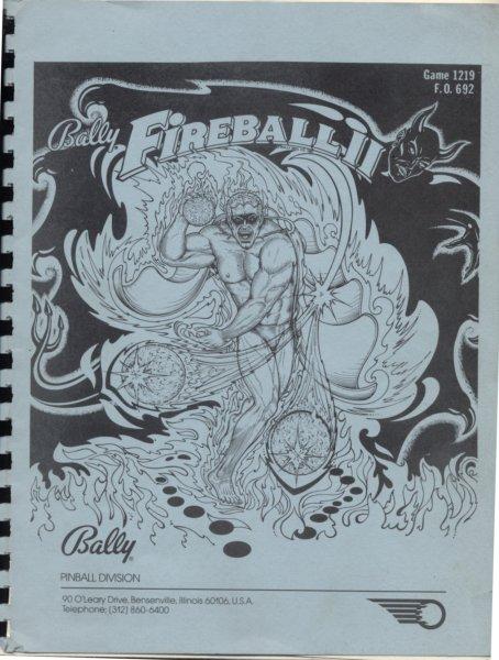 Original Bally Fireball II pinball machine Operations Manual and Schematics Manual. Includes operations and adjustments info, testing and problem diagnosis, parts information and wiring diagrams.