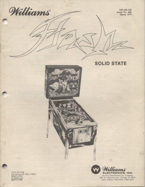 Original Williams Flash Solid State pinball manual with some wear. Includes game operation, game adjustments, bookkeeping and maintenance information.