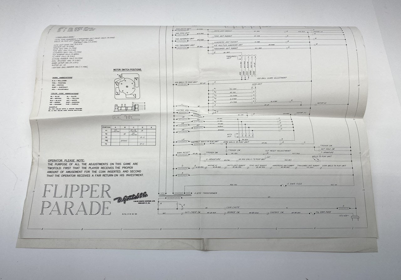 Original Gottlieb Flipper Parade pinball machine schematic/wiring diagram from 1961.