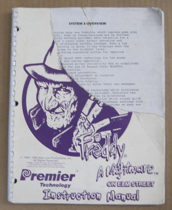 Original Gottlieb Freddy A Nightmare on Elm Street pinball machine manual. Manual does have a tear on the front cover, but is otherwise in good condition.