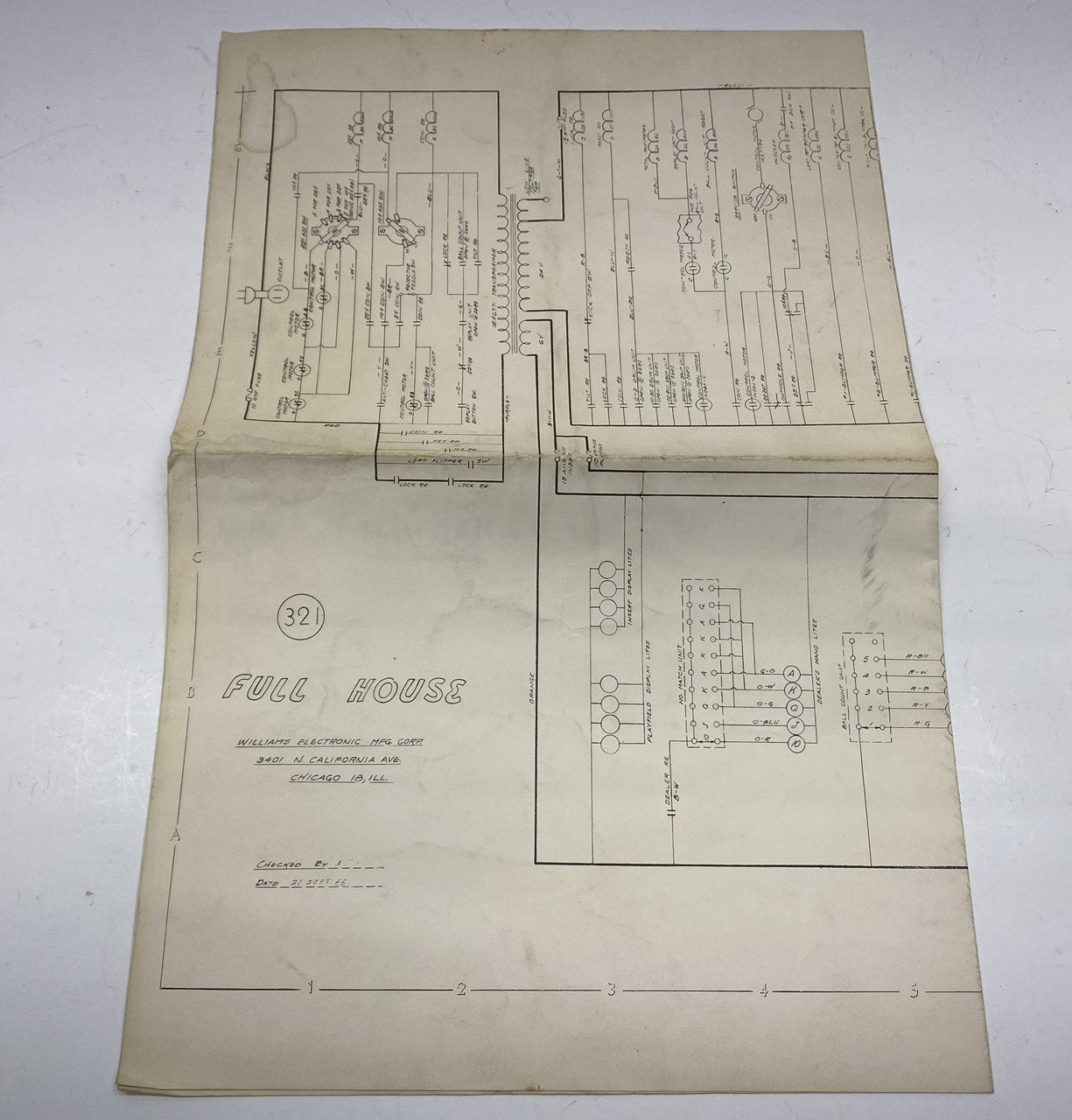 Original Williams Full House pinball machine schematic/wiring diagram from 1966.