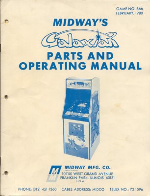 Galaxian Parts and Operating Manual with fold-out schematics in good condition.