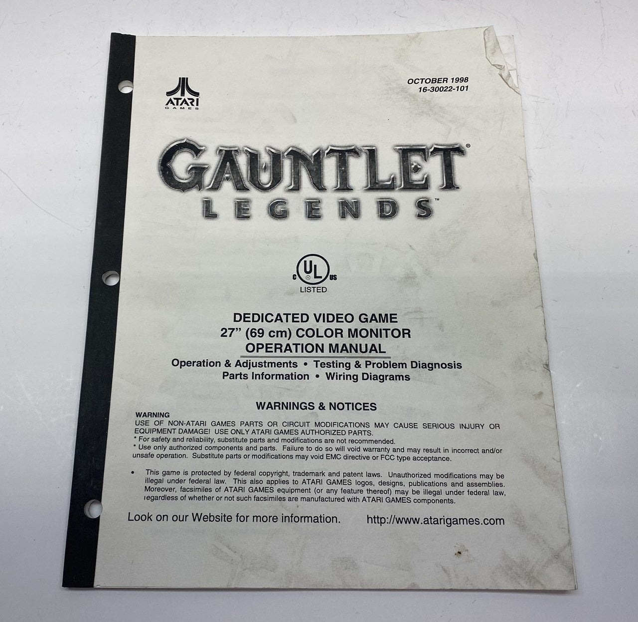 Original Midway Gauntlet Legends 27" Dedicated Game arcade game manual in good condition.