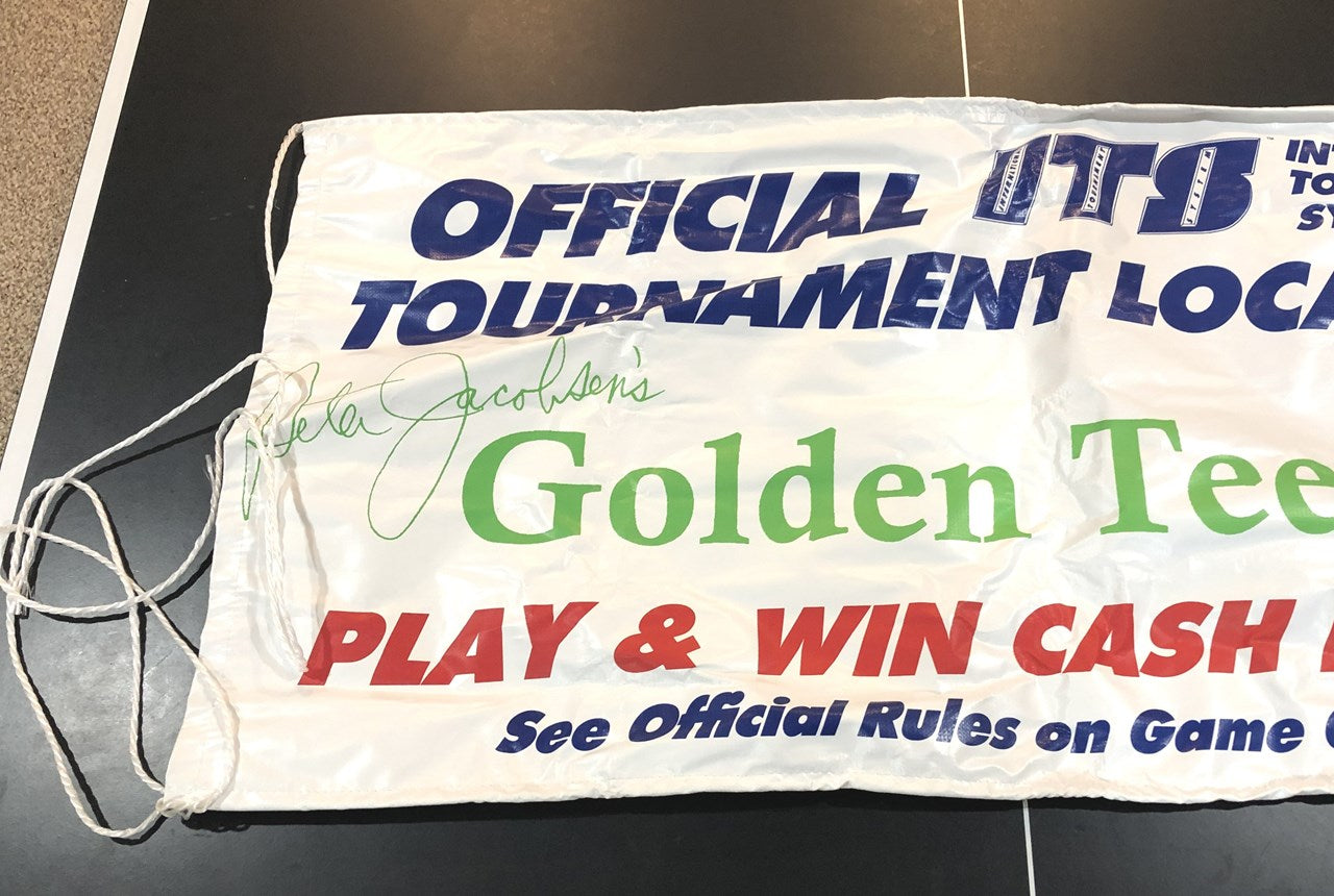 Original, new old stock Incredible Technologies Golden Tee Fore arcade game poster. This is an original promotional banner in very good condition, it was never used, does have some wear from sitting, but overall very clean. It was stored folded, but should flatten out fine. Banner measures 23" x 47". See picture for more details.