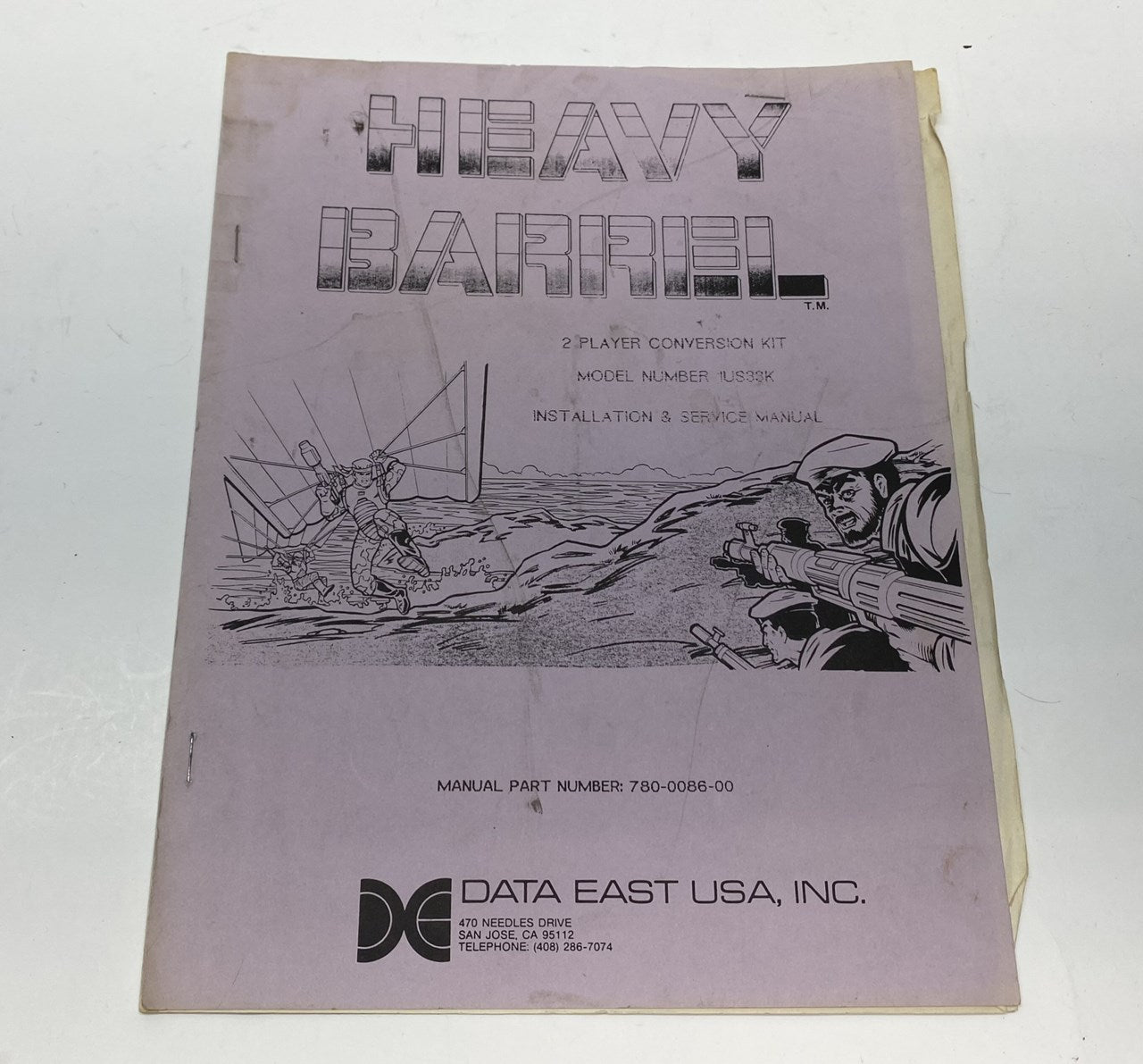 Data East Heavy Barrel arcade game instruction manual. Includes game operation information, dipswitch settings and wiring diagrams among other things.
