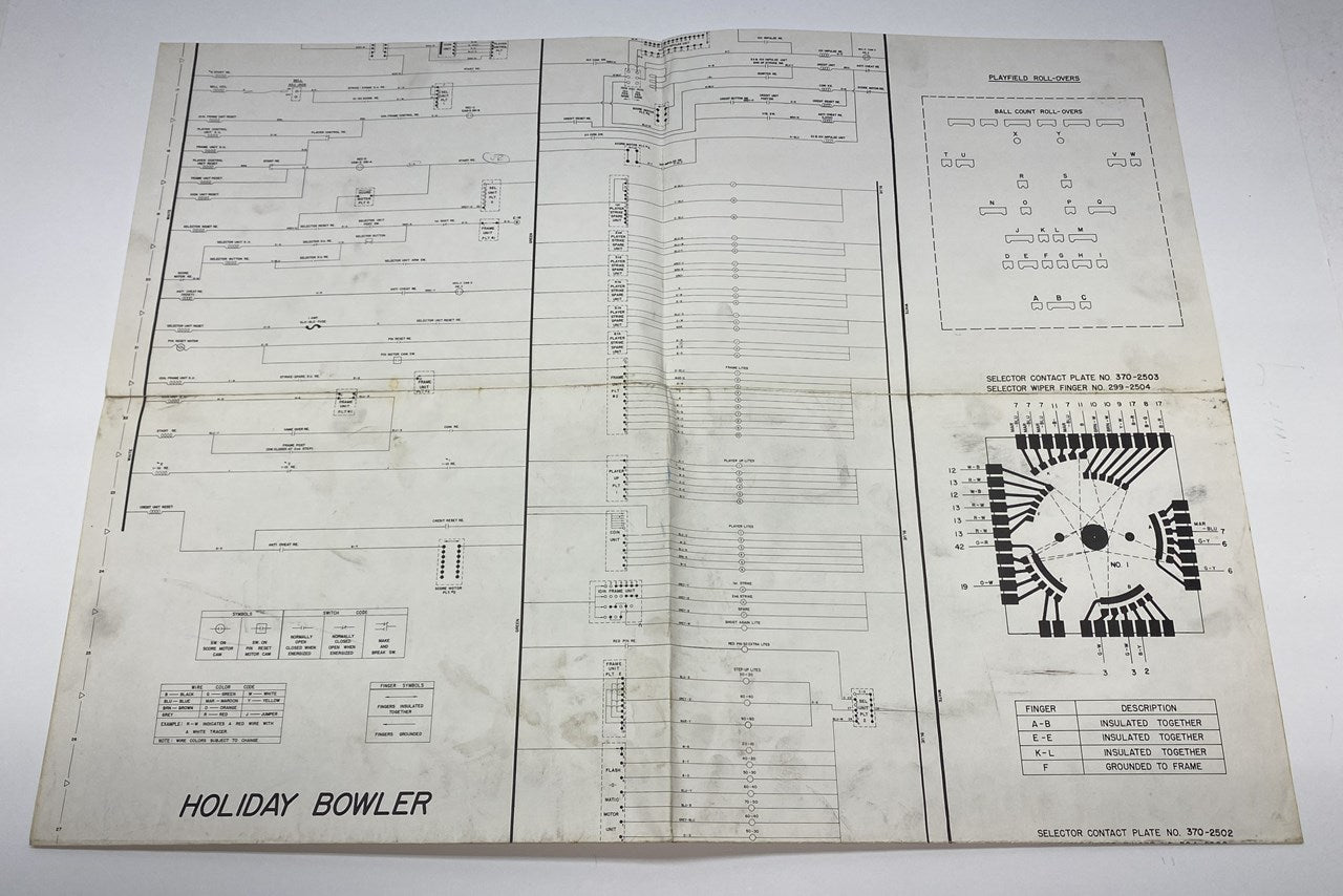 Original Chicago Coin's Holiday Bowler shuffle bowler large schematic sheet in used condition.