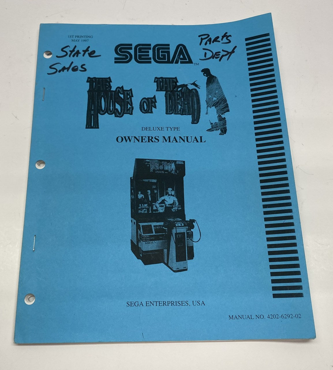 Original Sega House of the Dead Deluxe arcade game Owner's Manual in good condition. This large manual includes game operation information, parts and wiring diagrams, among other things.