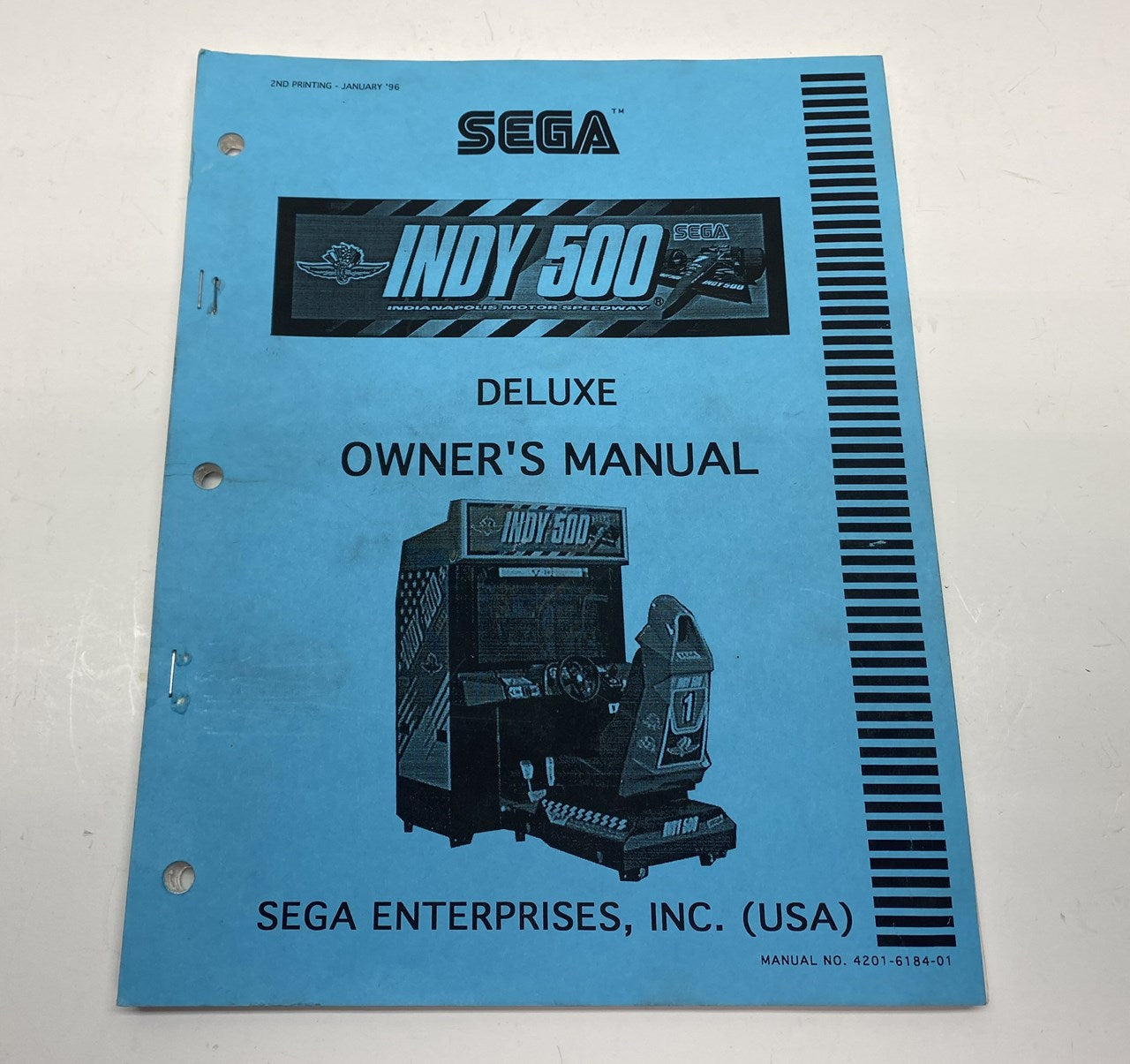 Original Sega Indy 500 Deluxe dedicated arcade game manual in good condition.