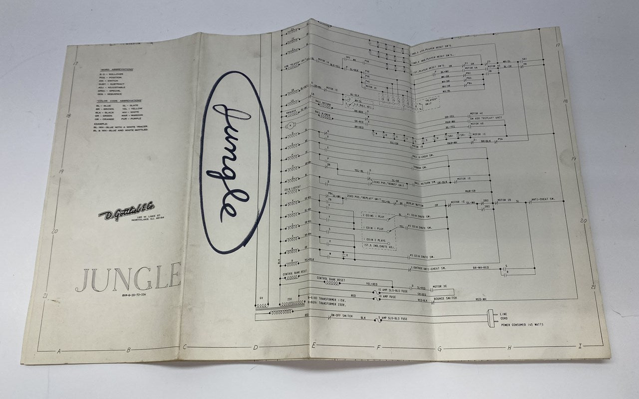 Original Gottlieb Jungle pinball machine schematic/wiring diagram from 1972.