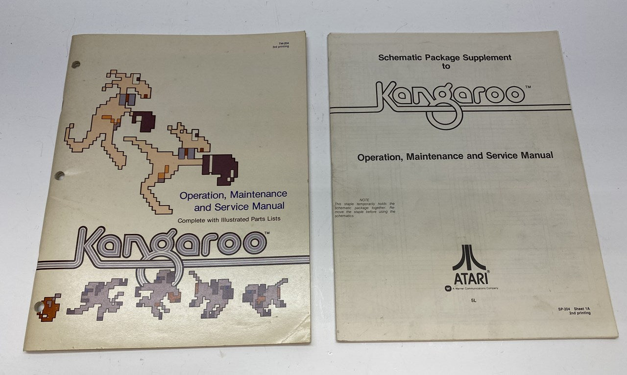 Atari Kangaroo Operation Maintenance and Service Manual in very good condition. Also included is the Schematic Package Supplement for the game.