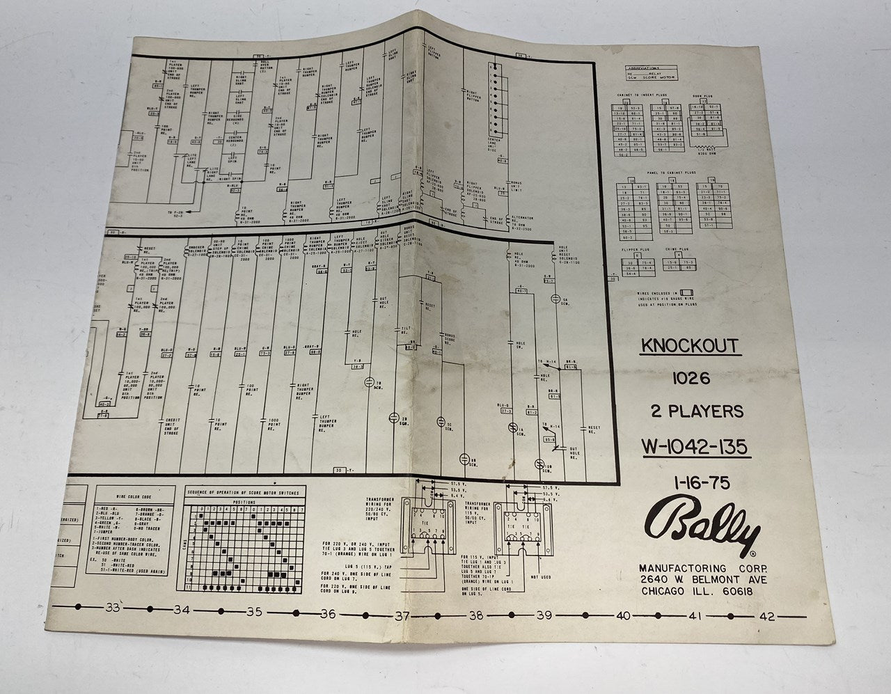 Original Bally Knockout pinball machine schematic / wiring diagram sheet.