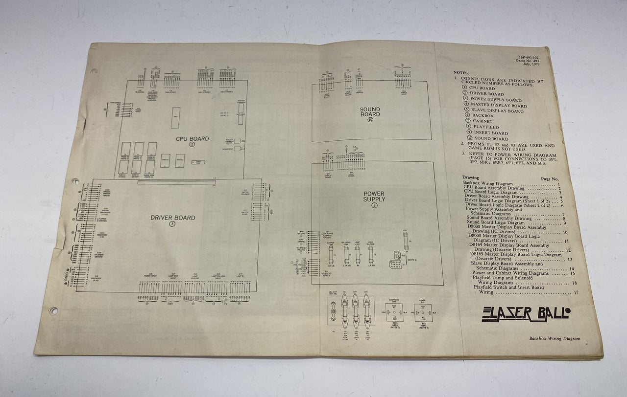 Original Williams Laser Ball schematic package and wiring diagrams.