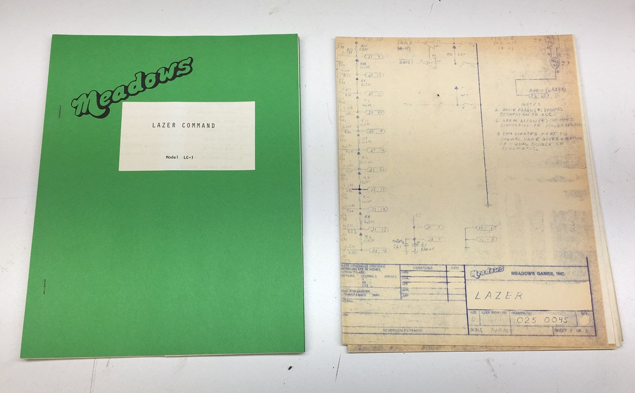 Original Meadows Lazer Command arcade game instruction manual. Includes game operation information, dipswitch settings, game schematics and a wiring diagram.