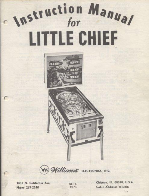 Original Williams Little Chief pinball machine instruction manual from 1975 in good condition.