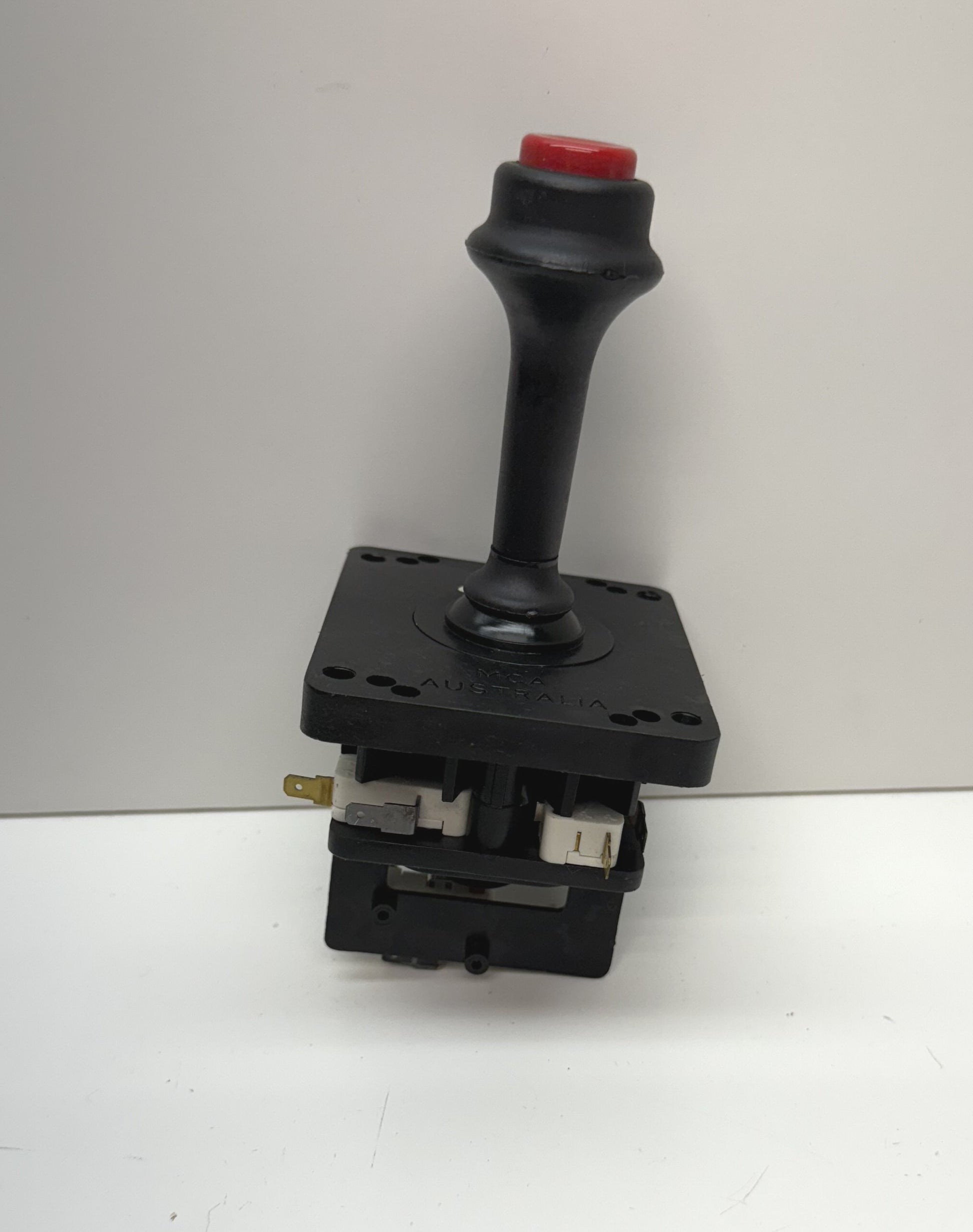 Original, new old stock (NOS) MCA Australia 2/4/8-way microswitch joystick with top red button in very good condition. Joystick has some very light wear but otherwise clean and was found with some other new old stock items.
