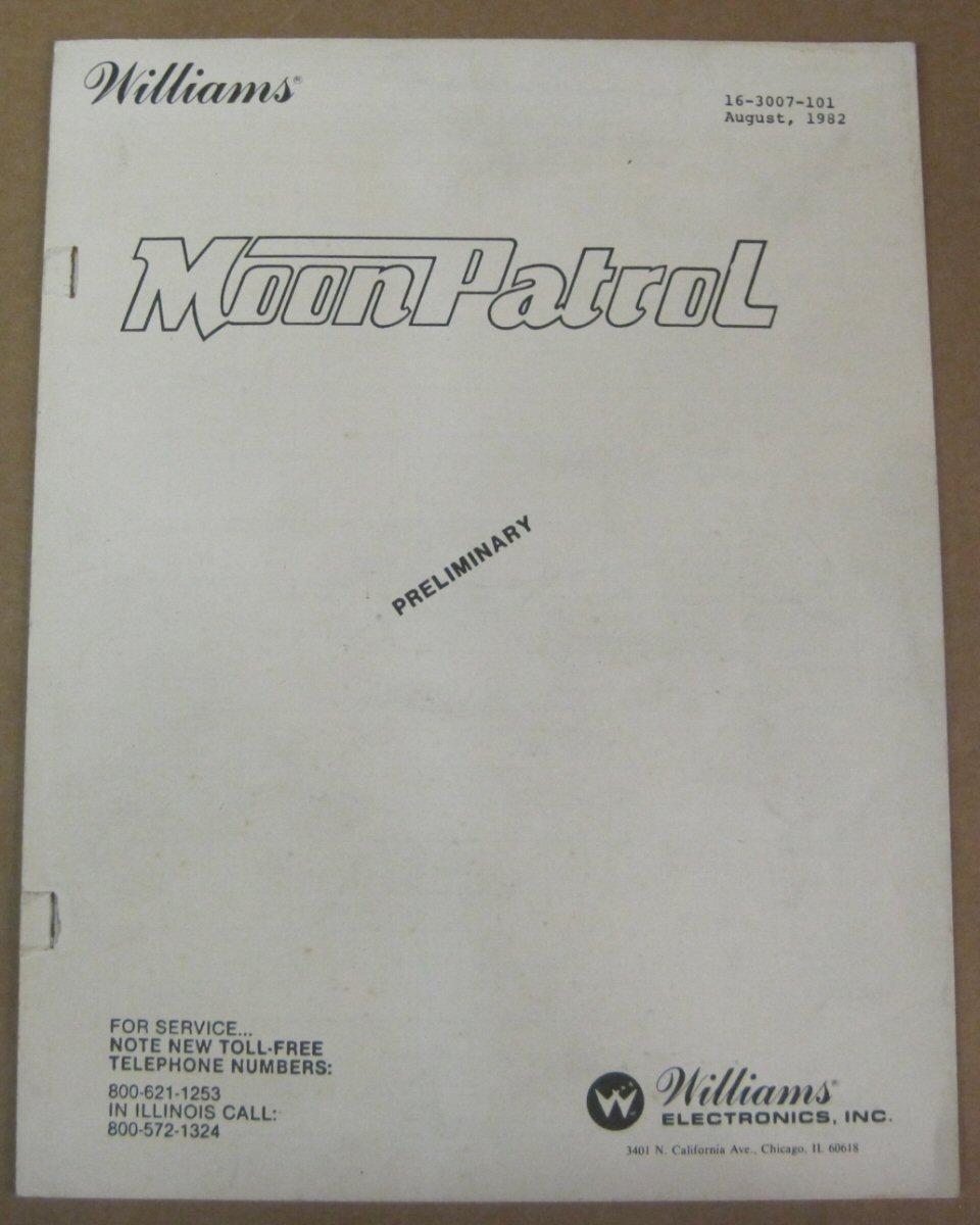 Original Williams Moon Patrol Preliminary arcade game manual. Includes schematics and game operating information.
