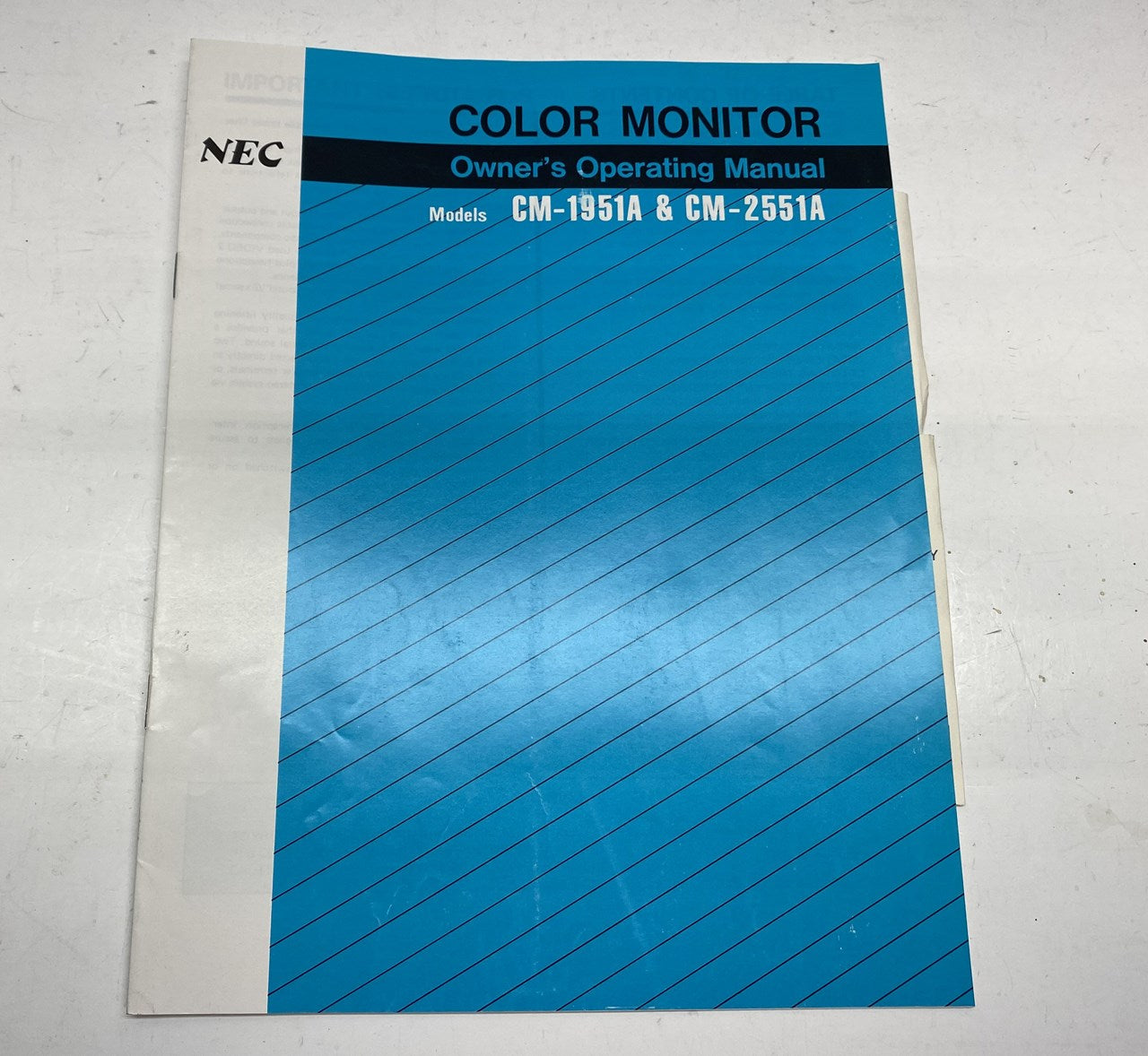 Original NEC CM-1951A / CM-2551A Owner's Operating Manual. Service and operation manual includes monitor information and troubleshooting info. Schematics are not included.