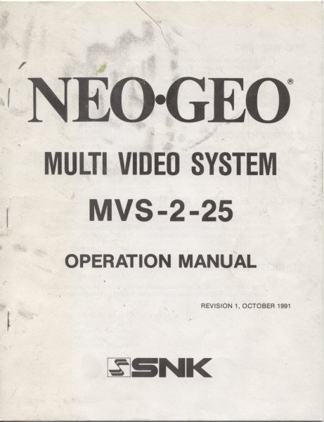 SNK Neo Geo MVS 2-Slot arcade game manual.