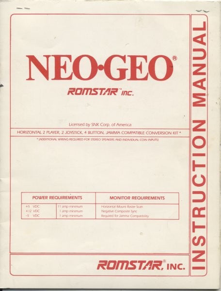Neo Geo arcade game manual in very good condition. This is the Romstar release version manual.