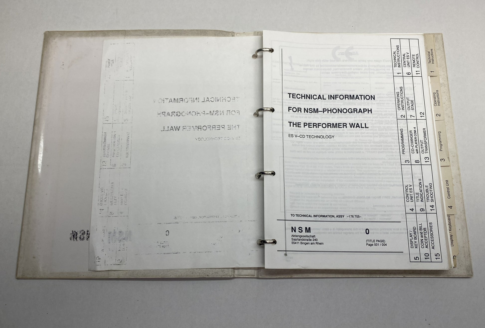 NSM Performer Wall Phonograph Service Binder
