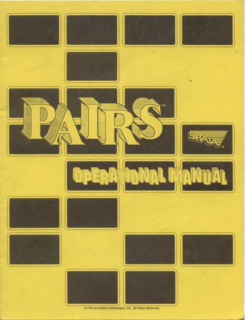 Original Strata Pairs arcade game operational manual in good condition.