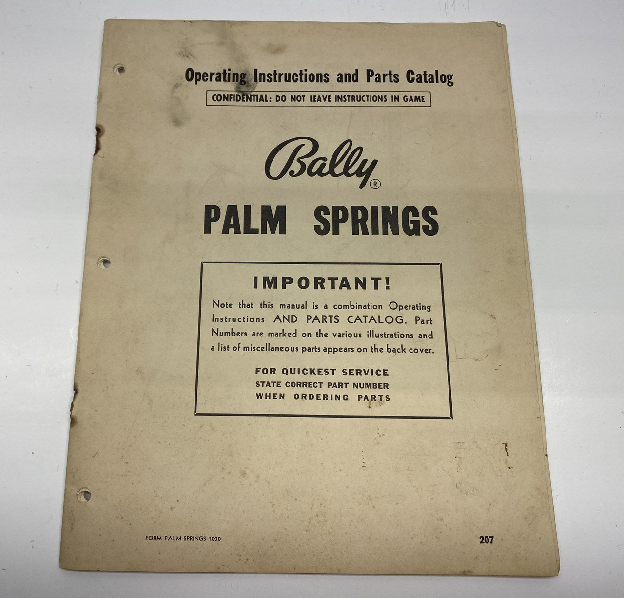 Original Bally Palm Springs Bingo machine manual in used condition with some typical wear.