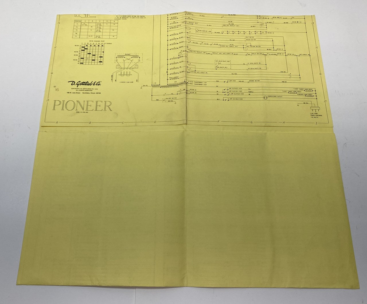Original Gottlieb Pioneer pinball machine schematic/wiring diagram from 1976.