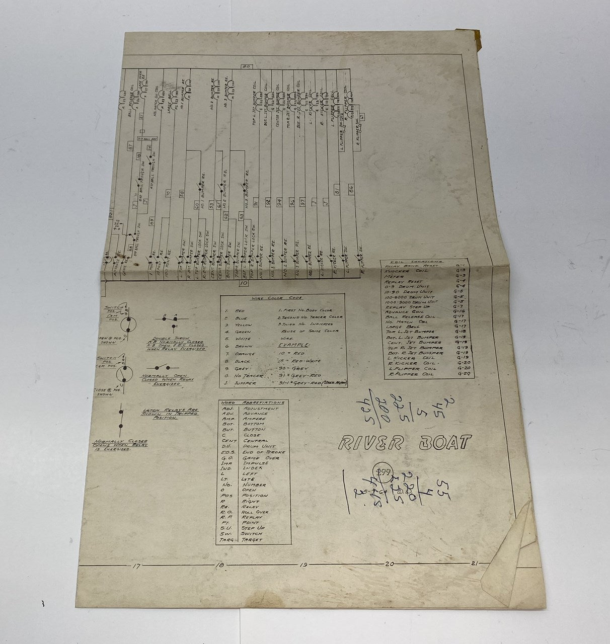 The pinball schematics we sell are generally large fold-out pages with schematics for pinball machines. These are original sheets, have been stored folded and have some wear, but are still usable. The picture below may be a sample picture only.