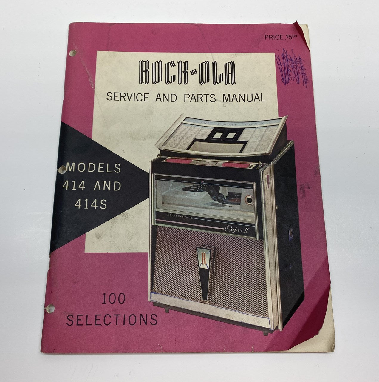 Original Rock-Ola Service Manual for Model 414 and 414S phonographs. This 74 page manual is in good used condition for its age.