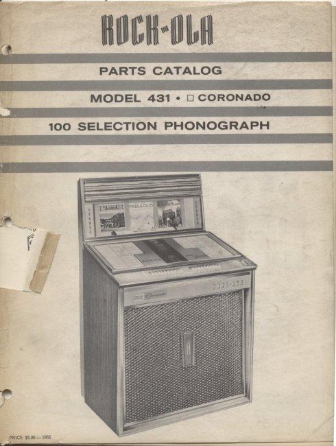 Original Rock-Ola 431 Cornado parts catalog in good condition.